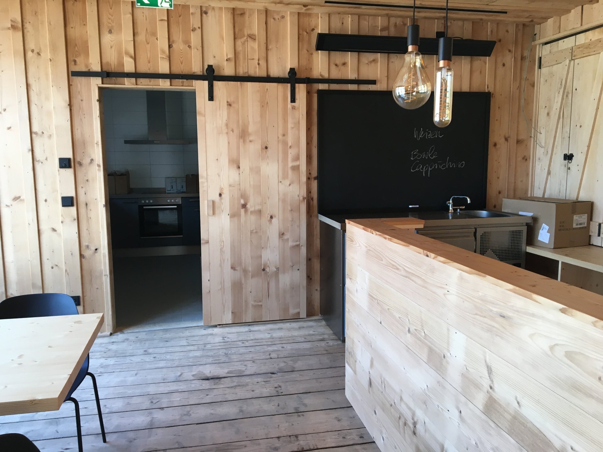 lärchenholzleisten, schieferdeckung, holzständerwände,